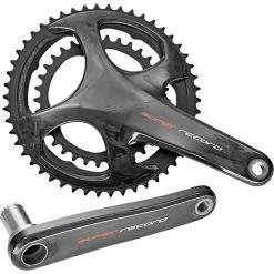 L’utilisation de roulements à billes en céramique CULT permet d’obtenir la fluidité désormais célèbre devenue la marque de fabrique de Campagnolo. Le dessin novateur du plateau droit, grâce notamment à la broche façonnée, assure un changement de vitesses en montée plus rapide et silencieux. Le dessin symétrique des dents du plateau permet en outre d’améliorer la stabilité dans les croisements de chaîne. Le double entraxe standard (112 et 145 millimètres) en combinaison avec les 8 vis de fixation, permet d’optimiser le poids et la rigidité, grâce à une plus grande utilisation de la fibre de carbone. Le nombre de broches différent pour chacune des trois combinaisons de plateaux (34/50, 36/52, 39/53) facilite le changement de vitesses en montée grâce à un engagement optimisé pour chaque combinaison. De plus, les sorties particulières présentes à l’intérieur des plateaux extérieurs favorisent la réalisation du passage de vitesses en descente dans les points morts du pédalage en optimisant la performance.
