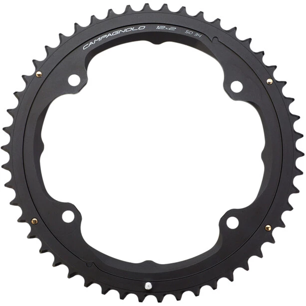 Dans le cercle des boulons standard, la fibre de carbone a Ă©tĂ© de plus en plus utilisĂ©e pour rĂ©duire le poids. La fixation se fait Ă l’aide de quatre vis, qui augmentent la rigiditĂ© du composant. Le nombre diffĂ©rent d’axes pour chacune des trois combinaisons de vitesses (34/50, 36/52, 39/53) facilite la montĂ©e des vitesses en optimisant l’engagement de chaque combinaison ; en outre, les reliefs des plateaux extĂ©rieurs facilitent la rĂ©trogradation dans les zones mortes du pĂ©dalage et amĂ©liorent les performances.