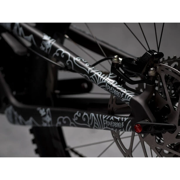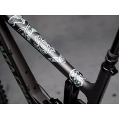 Avant son voyage dans l’Himalaya, Tito Tomasi voulait faire quelque chose de spĂ©cial avec son vĂ©lo. Il a donc fait ce qu’il fait le mieux : Il a créé une Ĺ“uvre d’art Ă©tonnante, et DYEDBRO en a fait un protecteur de cadre !