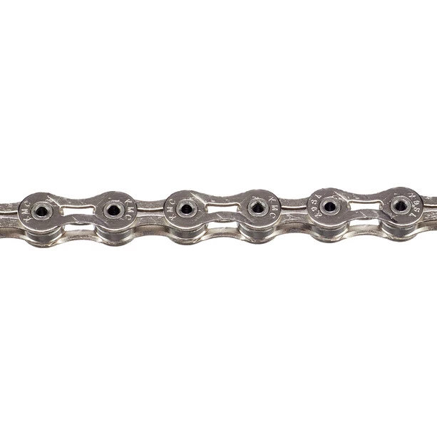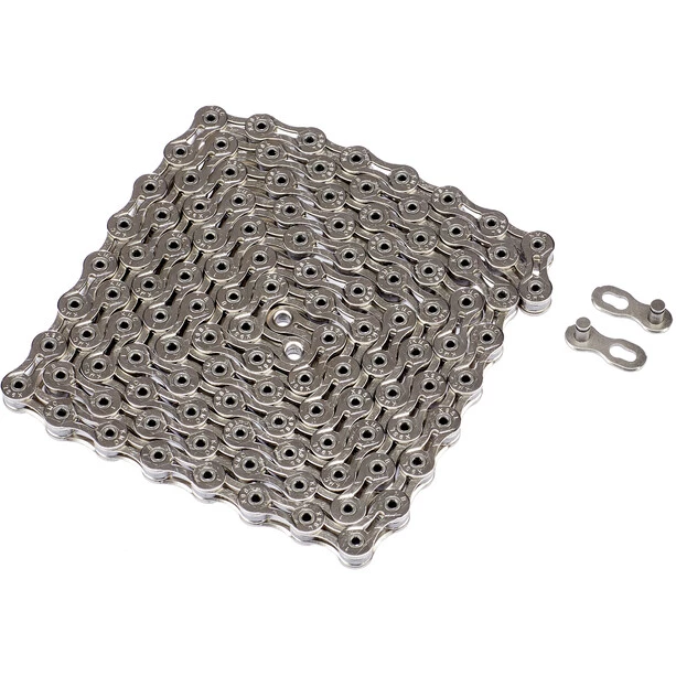 Avec le X9SL 9 vitesses en argent, KMC présente une chaîne de vélo de course et de cross-country super légère (SL), antirouille et extrêmement durable pour les systèmes de changement de vitesses Shimano, Campagnolo et SRAM 9 vitesses.