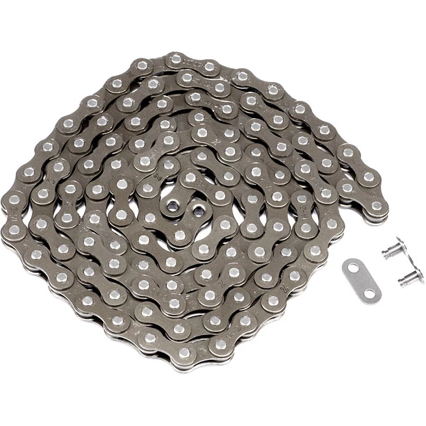 La chaîne étroite KMC Z1 est conçue pour les vélos BMX, Track & Fixed Gear, a une finition brune et élégante et est équipée de la fonction “No Drop”. La chaîne n’est pas non plus directionnelle.