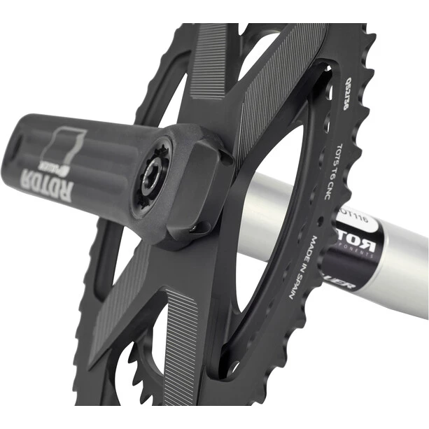 Vous pouvez choisir entre le plateau combiné révolutionnaire en une seule pièce (plateau combiné fraisé d’un seul bloc) et les plateaux simples. Les deux sont de forme ronde ou avec les Q-Rings ovales de ROTOR avec une ovalisation de 12,5%. On peut aussi utiliser une araignée à montage direct, qui permet le montage traditionnel de deux plateaux avec des boulons de plateau et élargit encore le spectre. Le système OCA (Optimal Chainring Angle) permet le réglage idéal de l’OCP (Optimal Chainring Position) des Q-Rings sur la base de l’analyse de votre puissance sur un tour de pédale.
