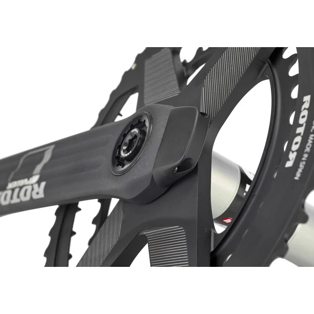 Vous pouvez choisir entre le plateau combiné révolutionnaire en une seule pièce (plateau combiné fraisé d’un seul bloc) et les plateaux simples. Les deux sont de forme ronde ou avec les Q-Rings ovales de ROTOR avec une ovalisation de 12,5%. On peut aussi utiliser une araignée à montage direct, qui permet le montage traditionnel de deux plateaux avec des boulons de plateau et élargit encore le spectre. Le système OCA (Optimal Chainring Angle) permet le réglage idéal de l’OCP (Optimal Chainring Position) des Q-Rings sur la base de l’analyse de votre puissance sur un tour de pédale.