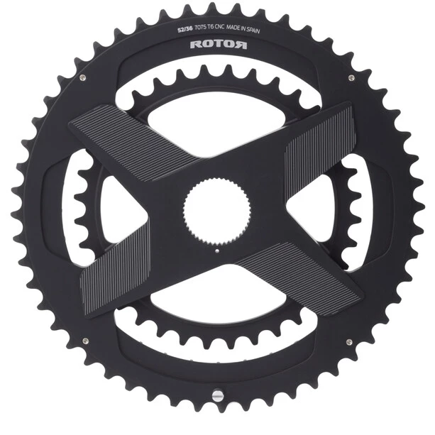 Avec le Q RING DM ROUND noir Avec le ROTOR ALDHU modulaire, ROTOR a développé un système de manivelle de vélo de course tourné vers l’avenir, qui peut être librement configuré et assemblé sans outils ni expertise particulière. Grâce au système de montage direct, le changement de pales est une question de minutes lorsqu’on utilise le plateau combiné en une seule pièce ou les pales simples avec le Direct Mount Spider. Que ce soit avec les plateaux ronds ou les anneaux Q-Rings ovales de Rotor, tout est possible et disponible dans de nombreuses variantes. Le système de montage direct ALDHU permet pour la première fois le réglage fin des plateaux ovales par incréments de 1 degré et donc une individualisation incomparable aux exigences personnelles. Lors de la configuration de l’ALDHU, plusieurs combinaisons de plateaux, fraisés à partir d’un seul bloc (conception monobloc), sont disponibles et poussent le poids du système en dessous de la marque magique de 600 grammes. La manivelle peut également être configurée avec une araignée légère à montage direct et deux plateaux simples. Les plateaux en version monobloc sont fabriqués d’une seule pièce et sont montés sur l’axe selon la méthode de montage direct sans outils. Pour changer les plateaux, seule une clé à douille hexagonale de 10 mm est nécessaire pour monter / démonter le bras de manivelle du côté de l’entraînement. Les craquements dus aux connexions par vis entre l’araignée et le plateau font désormais partie du passé. L’ovalité des anneaux de chaîne est de 12,5%.
