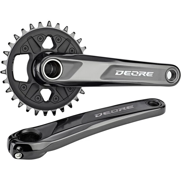 L’élégant pédalier DEORE au design métallique coloré est disponible exclusivement en version simple (1×12) et constitue le cœur d’une chaîne cinématique simple et conviviale. La même technologie DYNAMIC CHAIN ENGAGEMENT+ est utilisée sur les manivelles XTR, DEORE XT et SLX, qui, grâce à ses dents de forme spéciale, garantit à la fois le maintien de la chaîne sur le plateau et un fonctionnement souple et silencieux. Pour un montage sûr et facile, les plateaux sont fixés à la manivelle par Direct-Mount. Changer un plateau est donc un jeu d’enfant.