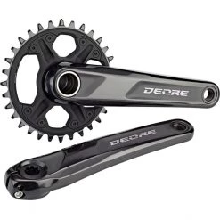 L’élégant pédalier DEORE au design métallique coloré est disponible exclusivement en version simple (1×12) et constitue le cœur d’une chaîne cinématique simple et conviviale. La même technologie DYNAMIC CHAIN ENGAGEMENT+ est utilisée sur les manivelles XTR, DEORE XT et SLX, qui, grâce à ses dents de forme spéciale, garantit à la fois le maintien de la chaîne sur le plateau et un fonctionnement souple et silencieux. Pour un montage sûr et facile, les plateaux sont fixés à la manivelle par Direct-Mount. Changer un plateau est donc un jeu d’enfant.