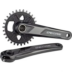 L’élégant pédalier DEORE au design métallique coloré est disponible exclusivement en version simple (1×12) et constitue le cœur d’une chaîne cinématique simple et conviviale. La même technologie DYNAMIC CHAIN ENGAGEMENT+ est utilisée sur les manivelles XTR, DEORE XT et SLX, qui, grâce à ses dents de forme spéciale, garantit à la fois le maintien de la chaîne sur le plateau et un fonctionnement souple et silencieux. Pour un montage sûr et facile, les plateaux sont fixés à la manivelle par Direct-Mount. Changer un plateau est donc un jeu d’enfant.