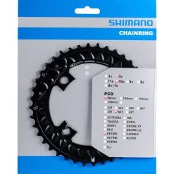 Le guide de chaĂźne Shimano Steps FC-E8000 spĂ©cialement dĂ©veloppĂ© pour les E-MTB rĂ©siste aux rigueurs du VTT. Il peut ĂȘtre utilisĂ© avec une ligne de chaĂźne de 50 Ă 53 mm.