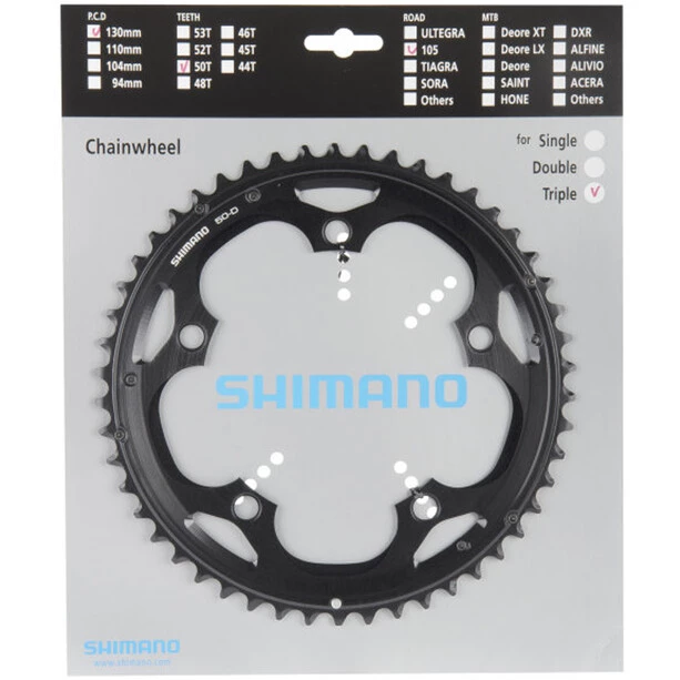 Les plateaux Shimano 105 FC-5703 avec entraxe des trous de 74 mm conviennent aux pédaliers à 3 vitesses des vélos de route avec la 10e cassette.