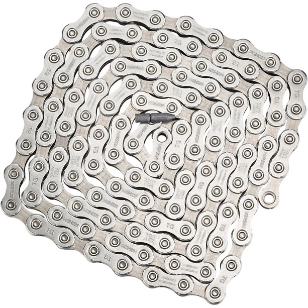La chaîne transmet la puissance du plateau au pignon du moyeu de la roue arrière. Elle est exposée à des contraintes extrêmes et aux intempéries : il est essentiel de choisir une chaîne adaptée à vos besoins. Pour profiter des performances du système HyperDrive de Shimano au maximum, choisissez cette chaîne. Solide et résistante, elle vous promet de longues sessions à vélo !