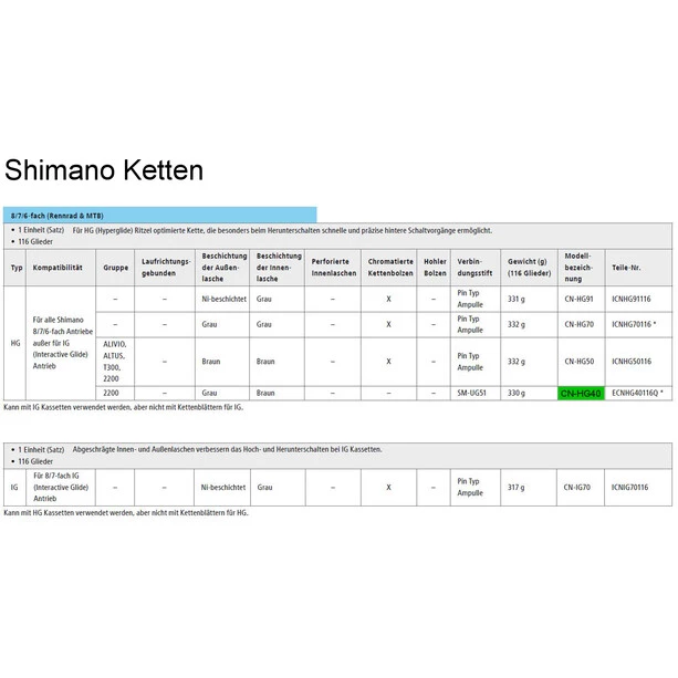 Chaîne Shimano HG (Hyperglide)