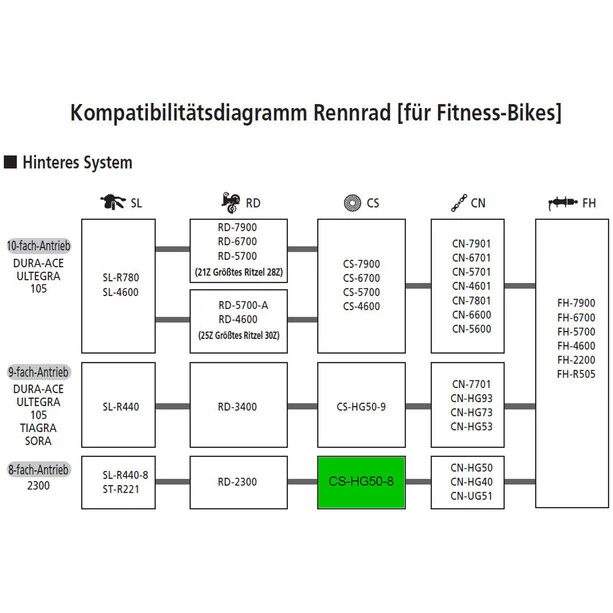 En combinaison avec les chaînes Hyperglide Shimano, les pignons à cassette HG garantissent une commutation d’index rapide et précise. Les pignons spéciaux conçus par ordinateur ont des profils de dents spécifiques ainsi que des aides à l’escalade spécialement positionnées qui optimisent le guidage de la chaîne lors des changements de vitesses. Il en résulte des changements de vitesses rapides, doux et silencieux.