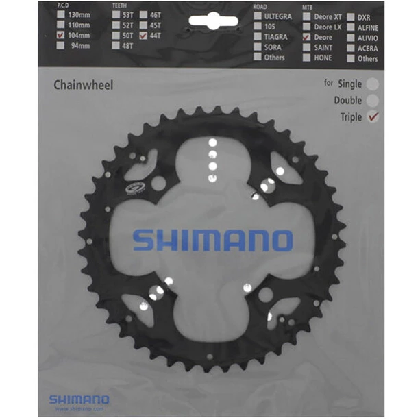 Le plateau Shimano Deore FC-M530 avec un cercle de pas de 104 mm convient aux pédaliers à 3 vitesses sur VTT avec 9 cassettes.