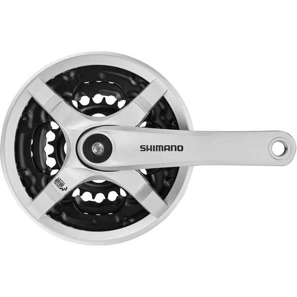 Ce pédalier abordable de la série Shimano Tourney-Serie est idéalement adapté pour les VTT et les vélos de randonnée grâce à son rapport de transmission et sa robustesse. Il est équipé de trois couronnes pour des chaînes à 6/7/8 vitesses et d’une fixation carrée solide (boîtier de pédalier non inclus). Ce pédalier est également compatible avec un boîtier à chaîne.