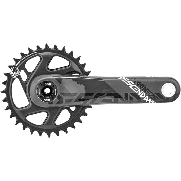 Destiné aux pratiques engagées Enduro/DH, le pédalier TRUVATIV Descendant Carbon Dub représente le compromis idéal entre légèreté et robustesse, en faisant une solution parfaite pour les coureurs en quête de performance recherchant le meilleur rapport qualité/prix possible. Ce pédalier conçu pour les transmission mono-plateau 12 vitesses associe en effet des manivelles en carbone et un plateau en aluminium autorisant des relances nerveuses tout en affichant la solidité nécessaire pour subir les contraintes d’un pilotage agressif. Affichant des performances de haut niveau, le plateau bénéficie de la technologie X-Sync 2, qui permet un enclenchement rapide et sûr de la chaîne, grâce au profil carré de sa denture. Des cavités d’évacuation de la boue et de la saleté sont également intégrées. Dans cette version, le pédalier est par ailleurs doté du concept Dub, pensé dans le but de simplifier et de fiabiliser l’interface cadres/boîtiers, grâce à un système compatible avec toutes les principales normes de boîtier de pédalier et à un axe en aluminium garantissant à la fois une incroyable rigidité et une meilleure longévité. Il est ici proposé dans une version pour les cadres au standard Boost.