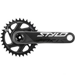 Destiné aux pratiques engagées Cross Country/All Mountain, le pédalier TRUVATIV Stylo Carbon Dub représente le compromis idéal entre légèreté et robustesse, en faisant une solution parfaite pour les coureurs en quête de performance recherchant le meilleur rapport qualité/prix possible. Ce pédalier conçu pour les transmission mono-plateau 12 vitesses associe en effet des manivelles en carbone et un plateau en aluminium autorisant des relances nerveuses tout en affichant la solidité nécessaire pour subir les contraintes d’un pilotage agressif. Affichant des performances de haut niveau, le plateau bénéficie de la technologie X-Sync 2, qui permet un enclenchement rapide et sûr de la chaîne, grâce au profil carré de sa denture. Des cavités d’évacuation de la boue et de la saleté sont également intégrées. Dans cette version, le pédalier est par ailleurs doté du concept Dub, pensé dans le but de simplifier et de fiabiliser l’interface cadres/boîtiers, grâce à un système compatible avec toutes les principales normes de boîtier de pédalier et à un axe en aluminium garantissant à la fois une incroyable rigidité et une meilleure longévité. Il est ici proposé dans une version pour les cadres au standard Boost.